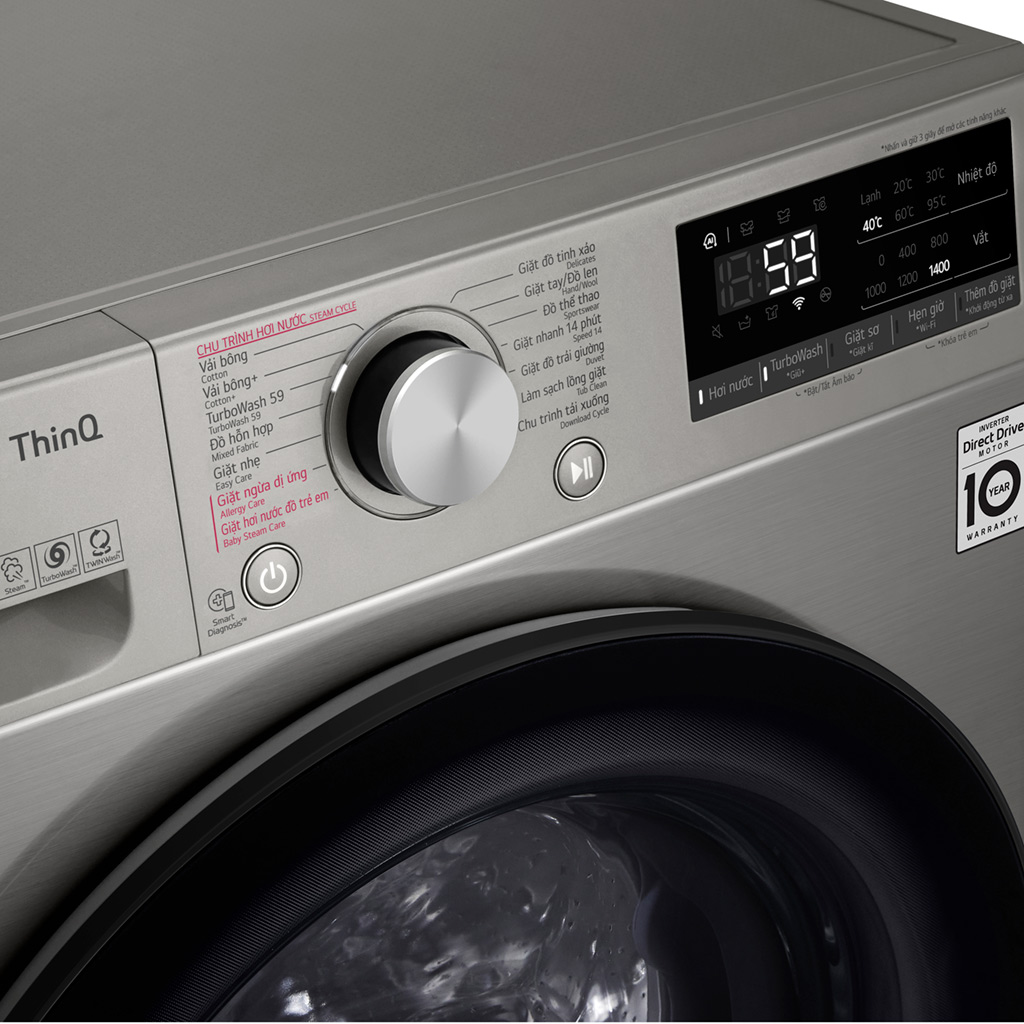 - Dung tích lớn: Máy giặt cửa trước LG 10KG FV1410S4P có dung tích 10kg, giúp bạn giặt được nhiều đồ cùng lúc, tiết kiệm thời gian và công sức.