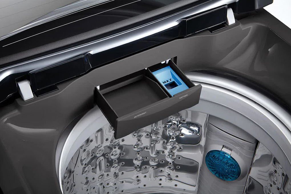 Một điểm đáng chú ý về chiếc Máy giặt này chính là dung tích lớn lên đến 11.5KG, cho phép người dùng giặt nhiều đồ cùng một lúc, tiết kiệm thời gian và năng lượng. Đồng thời, thiết kế cửa trên cũng giúp dễ dàng thêm và lấy đồ ngay cả khi quá trình giặt đang diễn ra.