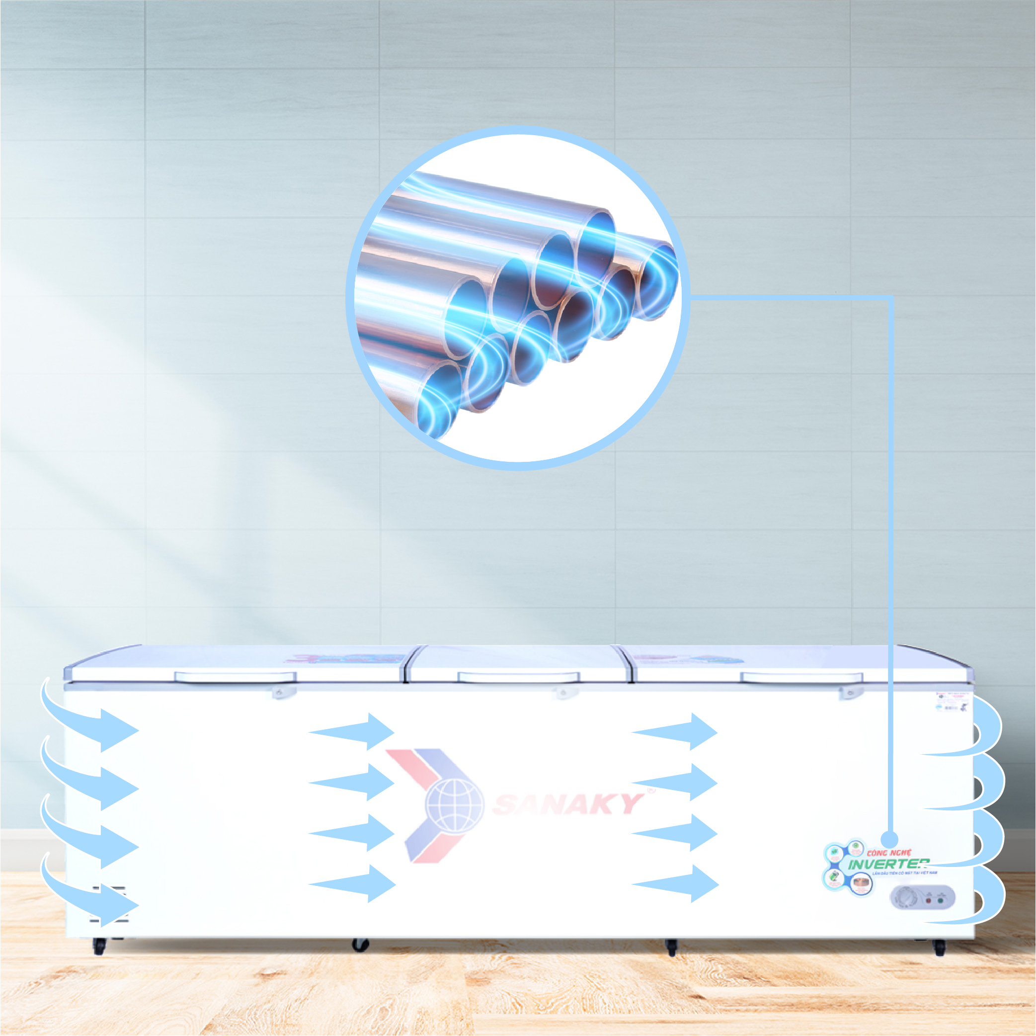 Công nghệ Inverter không chỉ giúp giảm tiêu thụ điện năng mà còn tăng cường độ bền và tuổi thọ của tủ đông.