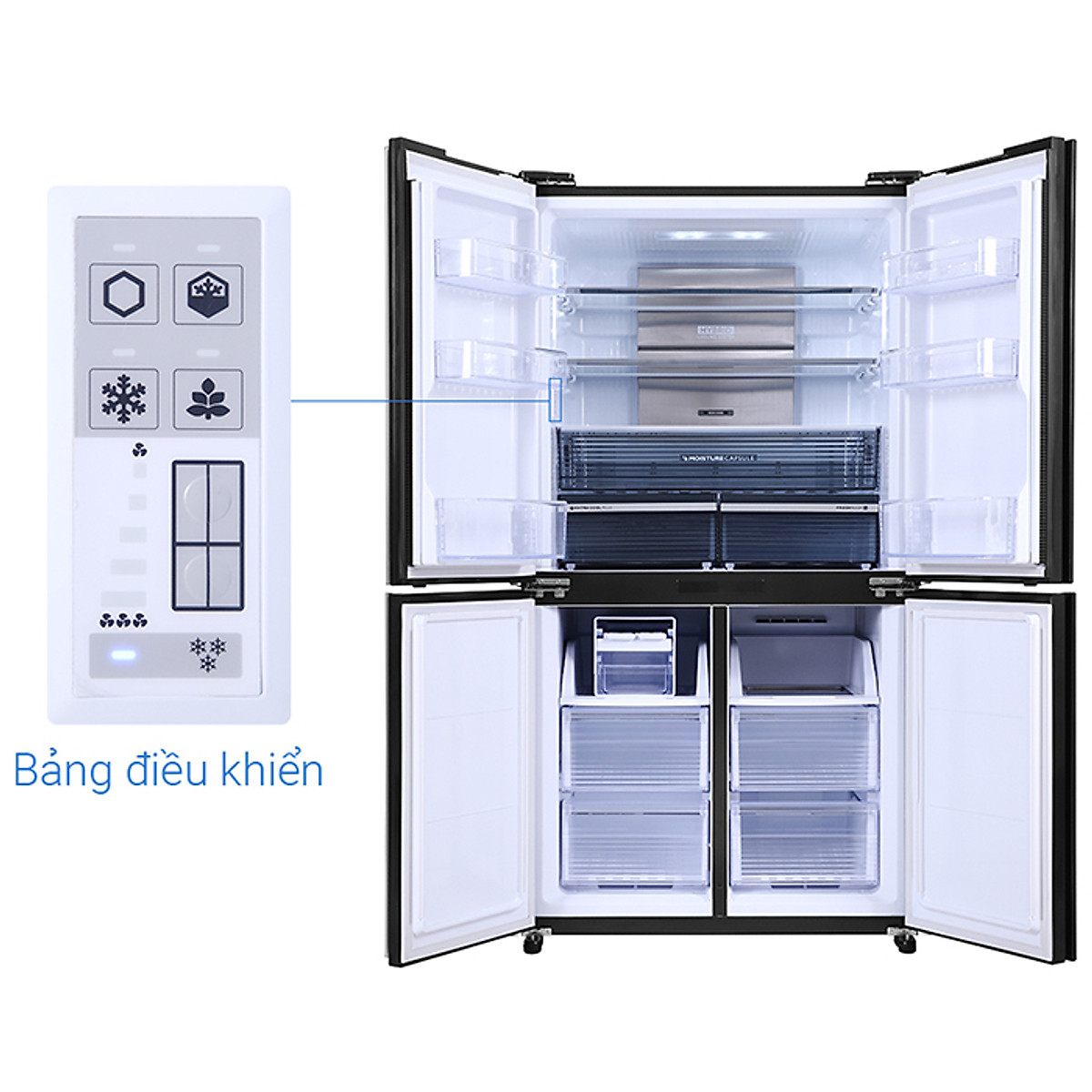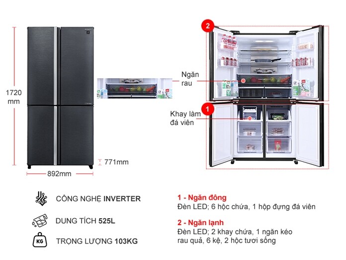 Với 4 cửa và kiểu dáng hiện đại, tủ lạnh Sharp trở thành điểm nhấn sang trọng trong không gian bếp của bạn.