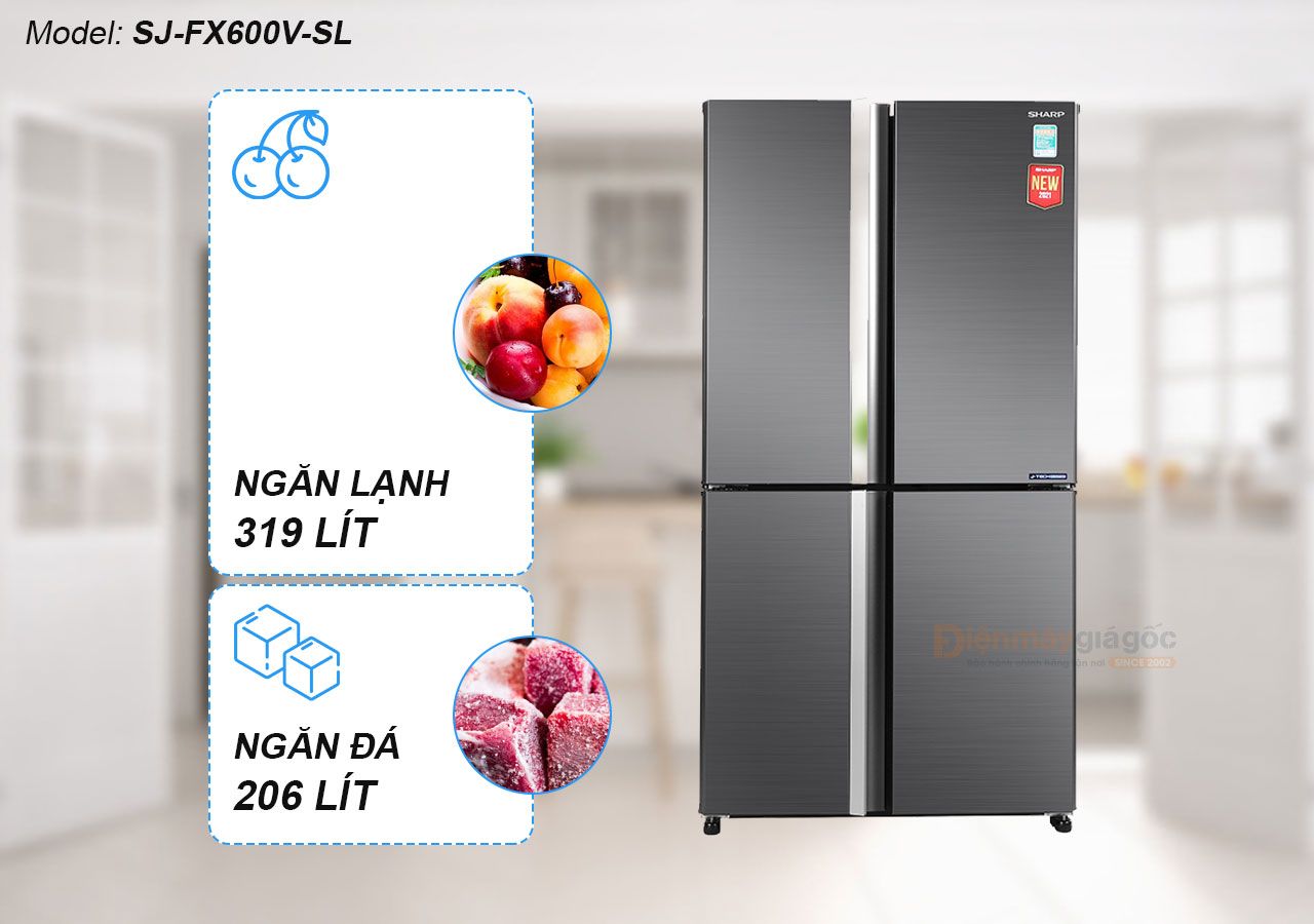 Tủ Lạnh Sharp 4 Cửa Multi Door 525L Inverter SJ-FX600V-SL - Thiết Kế Hiện Đại, Tiện Nghi Cao Cấp